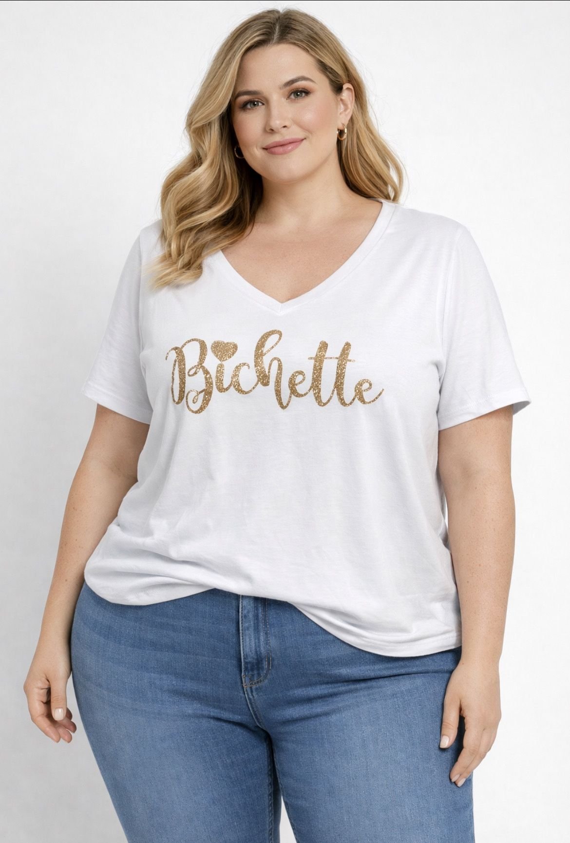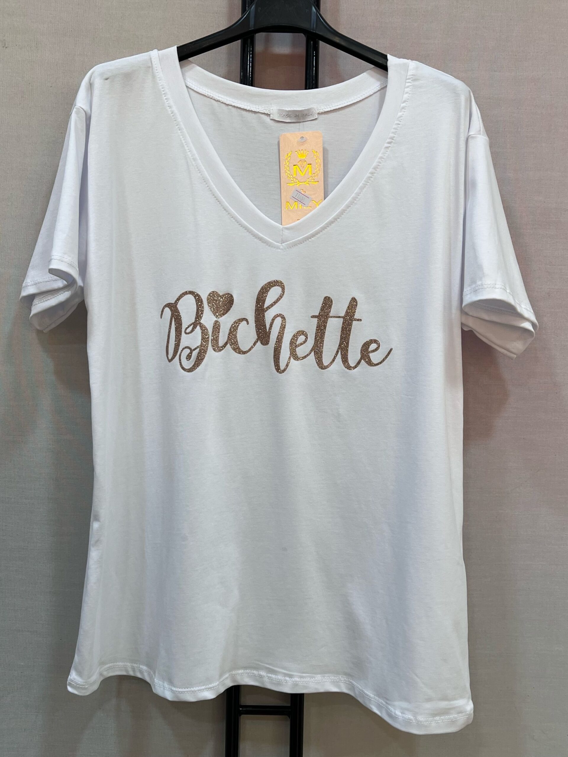 Tee shirt « Bichette » col V – Blanc – TU 42/48