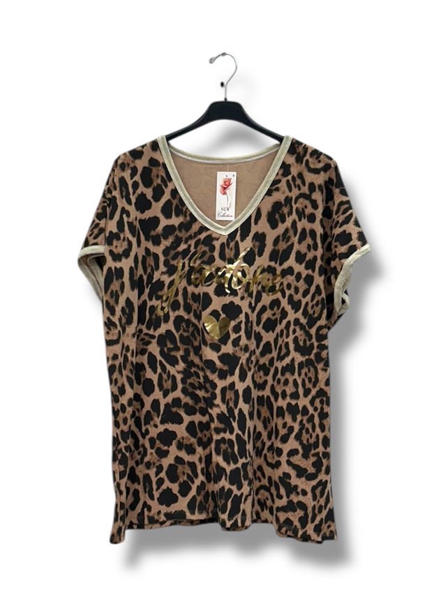 ✨ Tee-shirt imprimé léopard – « J’adore » doré & col V