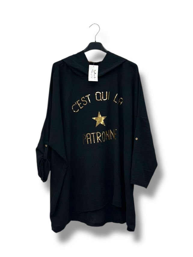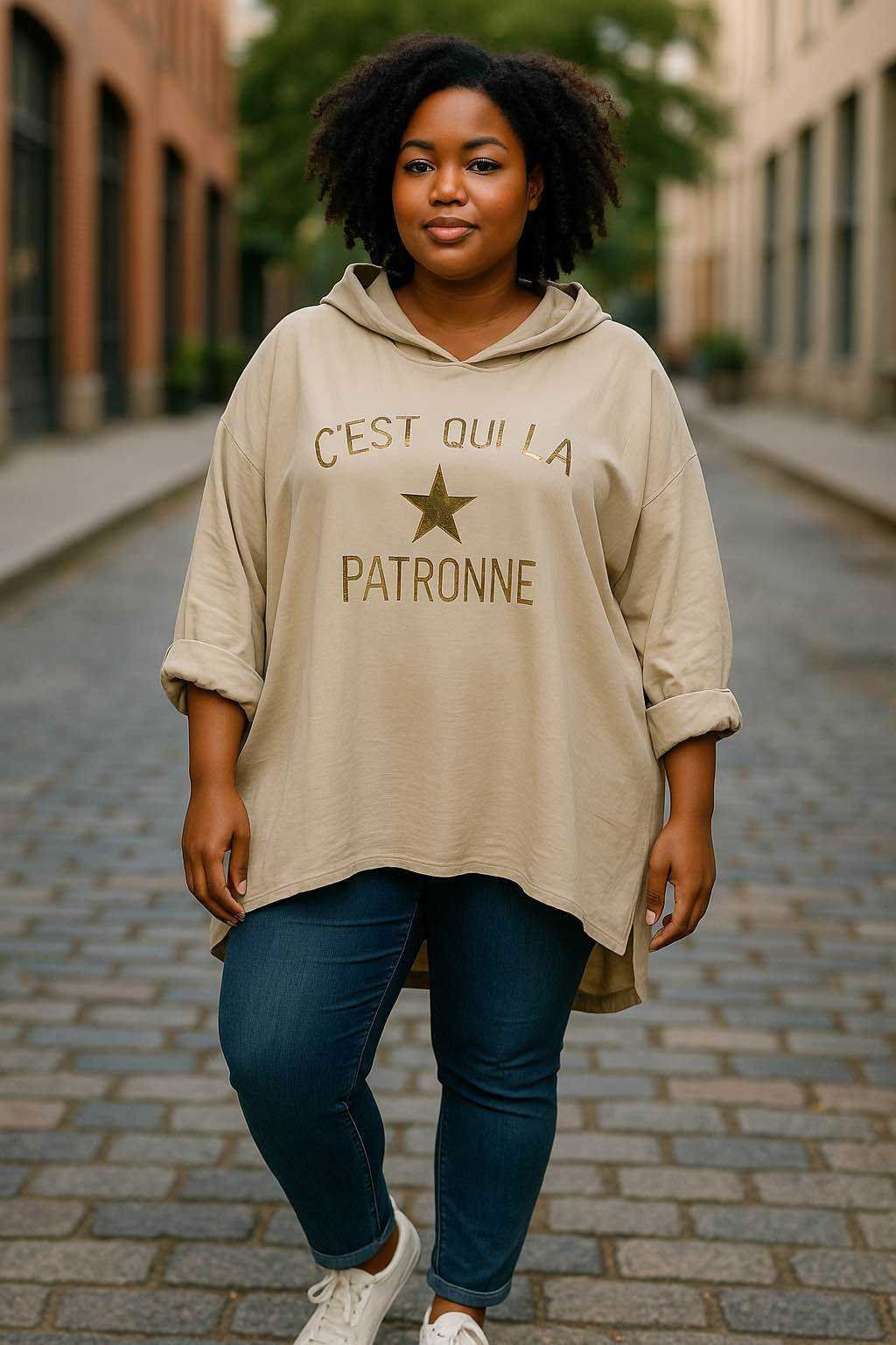 Tunique capuche « C’est qui la patronne » Viscose – TU GT – 46 au 56