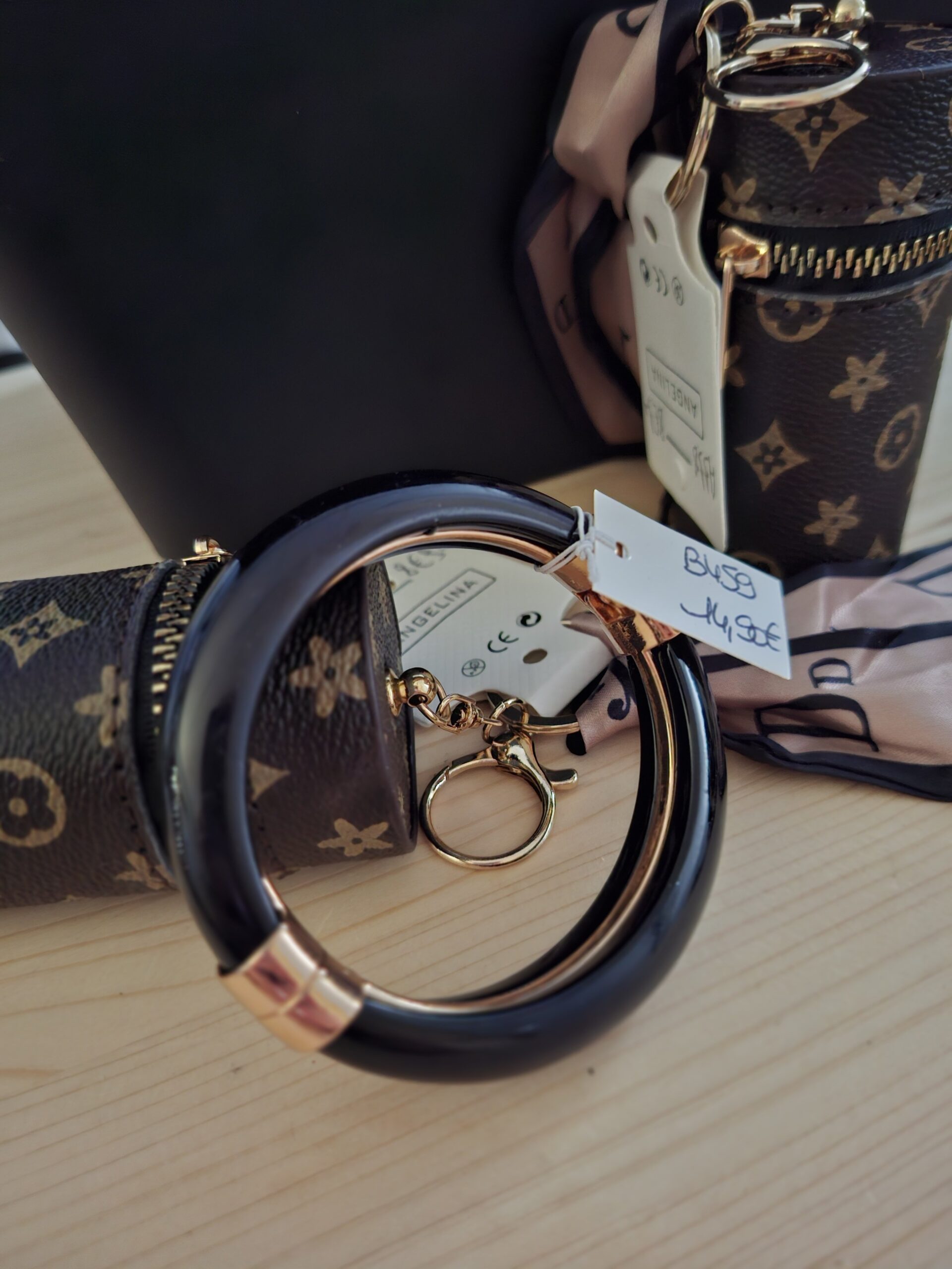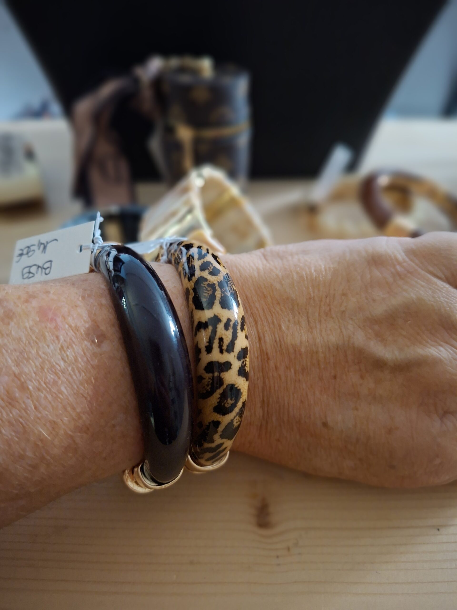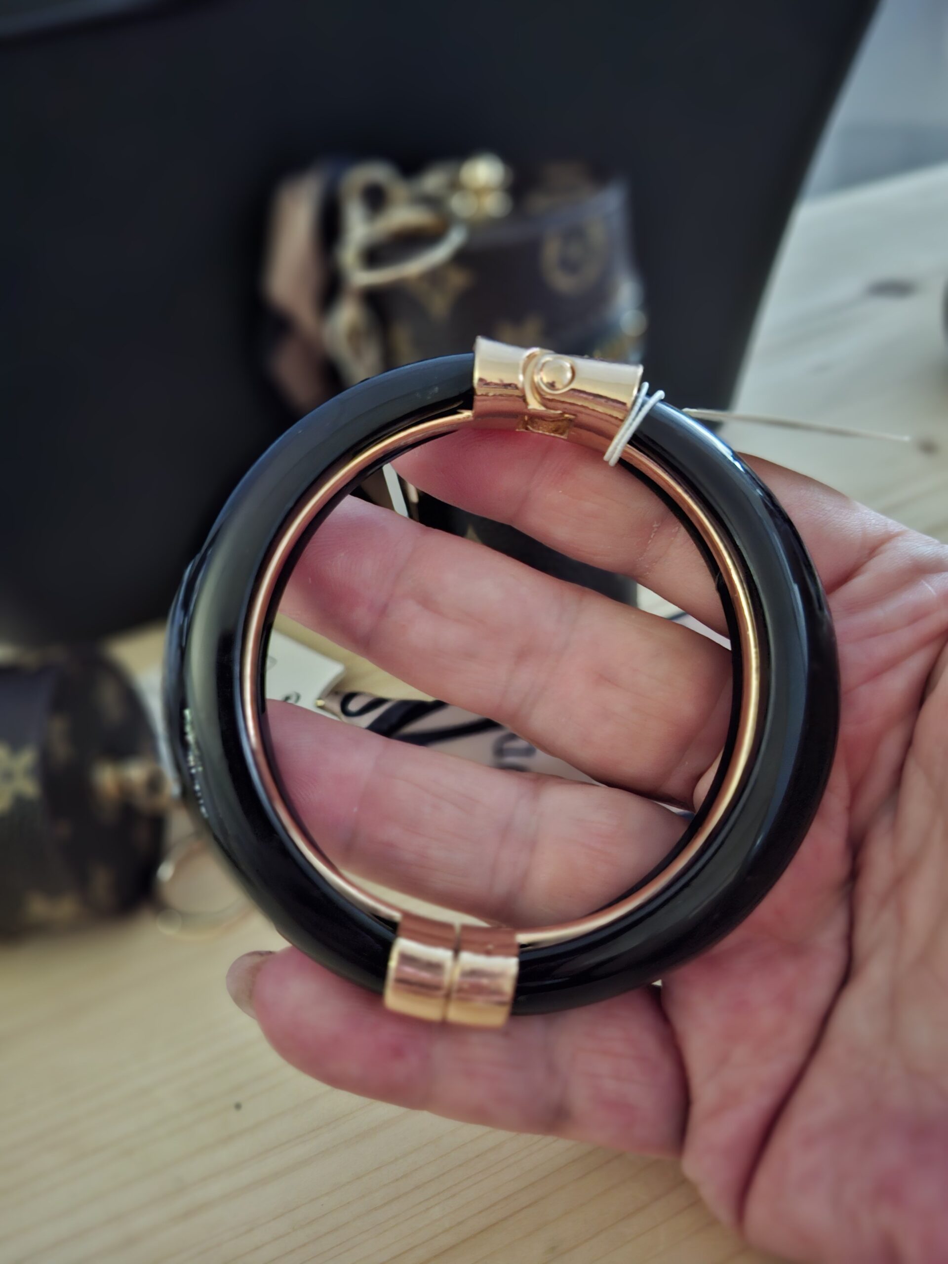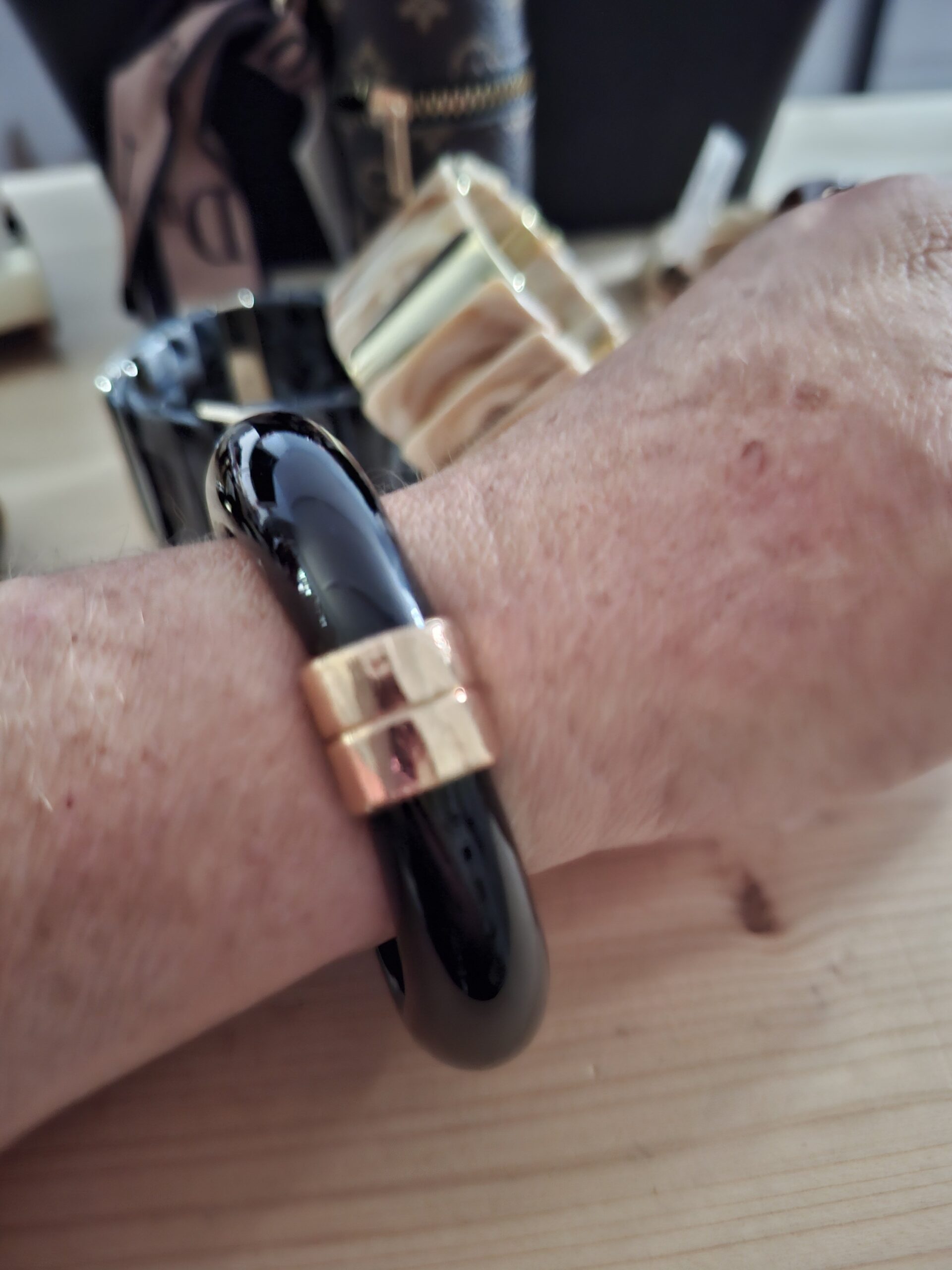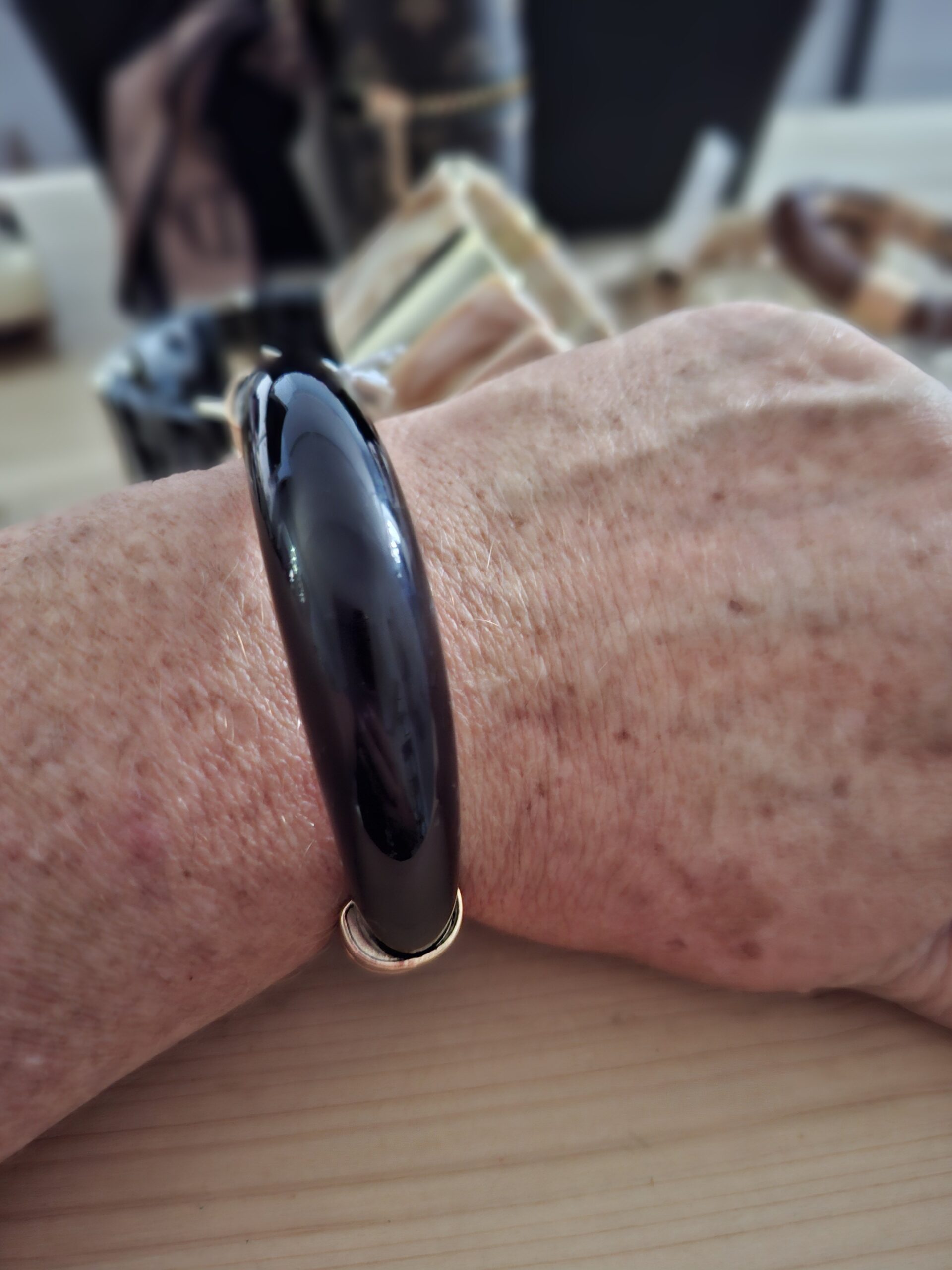 🌸 Sobriété et élégance se rencontrent dans ce bracelet jonc noir aux finitions dorées raffinées.