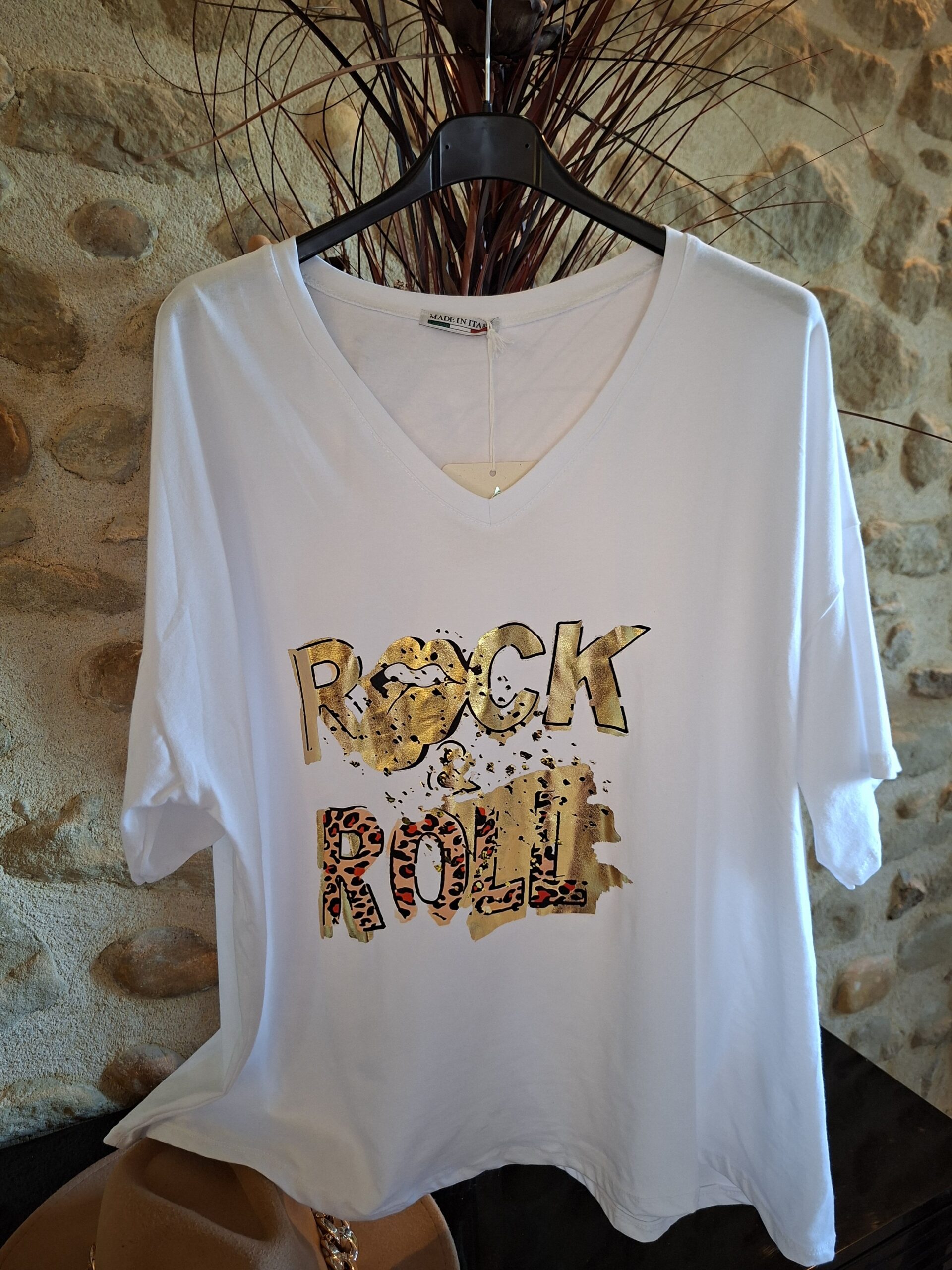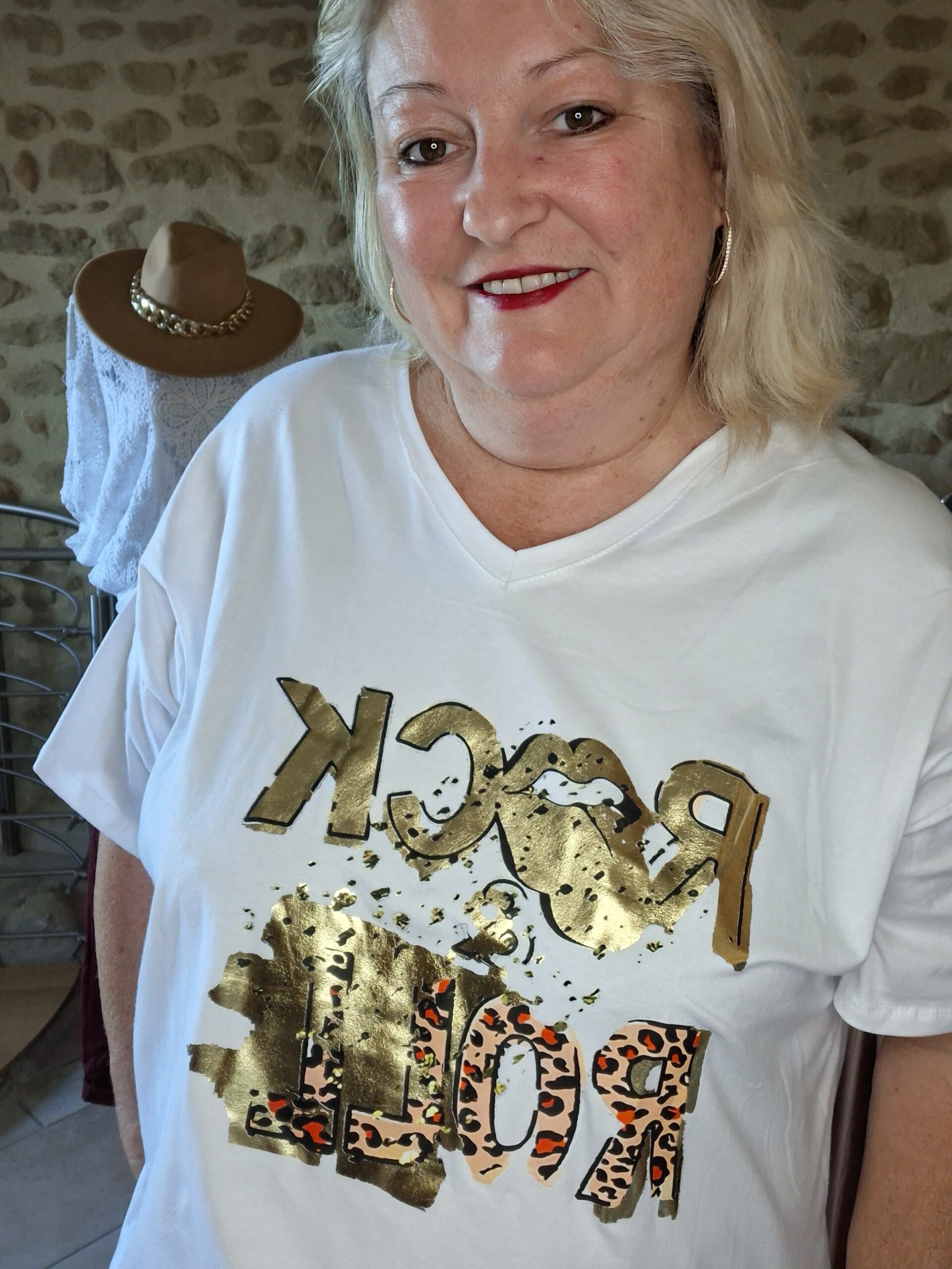 🔥Tee-shirt Grande Taille « ROCK & ROLL » – Taille Unique (jusqu’au 50/52)